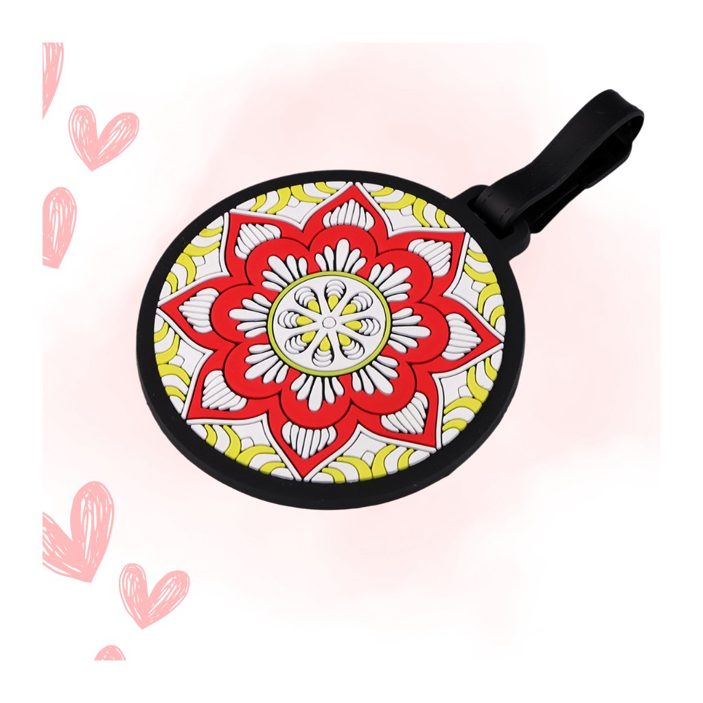Jmenovka na kufr je ozdobena motivem mandaly na jedné straně, což usnadňuje identifikaci vašeho zavazadla mezi mnoha dalšími kufry. Vyrobena ze silikonu, je ohebná a odolná. Na druhé straně jmenovky jsou kolonky pro základní údaje jako jméno, adresa, telefon a e-mail.