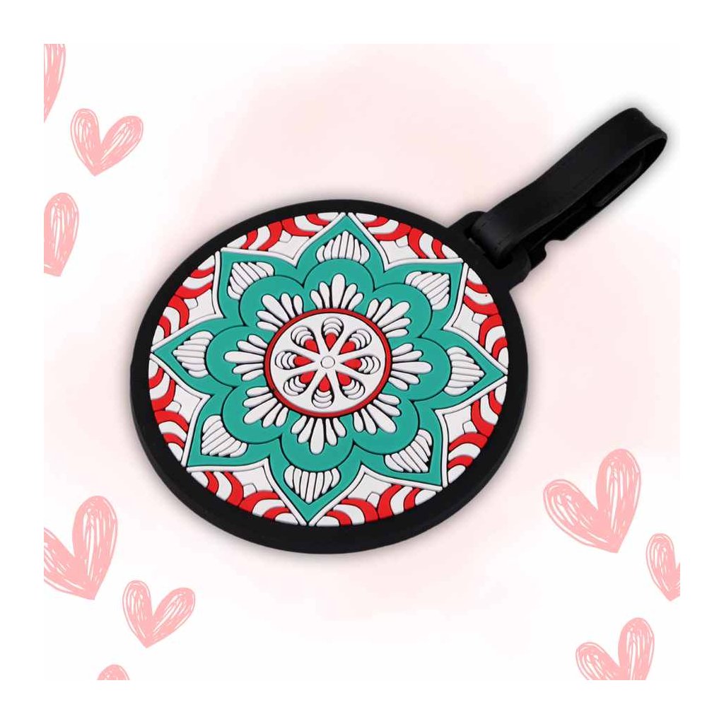 Jmenovka na kufr je ozdobena motivem mandaly na jedné straně, což usnadňuje identifikaci vašeho zavazadla mezi mnoha dalšími kufry. Vyrobena ze silikonu, je ohebná a odolná. Na druhé straně jmenovky jsou kolonky pro základní údaje jako jméno, adresa, telefon a e-mail.
