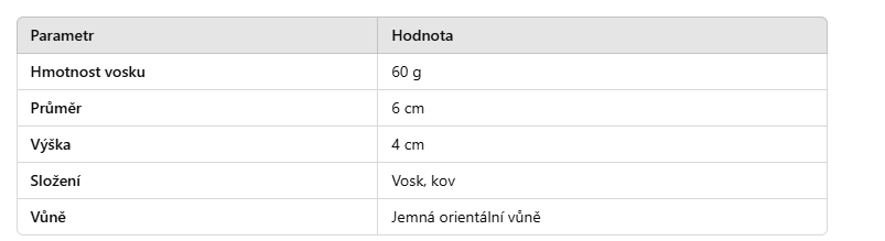 Vonná svíčka v elegantní plechové dóze provoní váš domov jemnou orientální vůní a vykouzlí útulnou atmosféru. Skvělá volba pro chvíle relaxace i jako milý dárek.