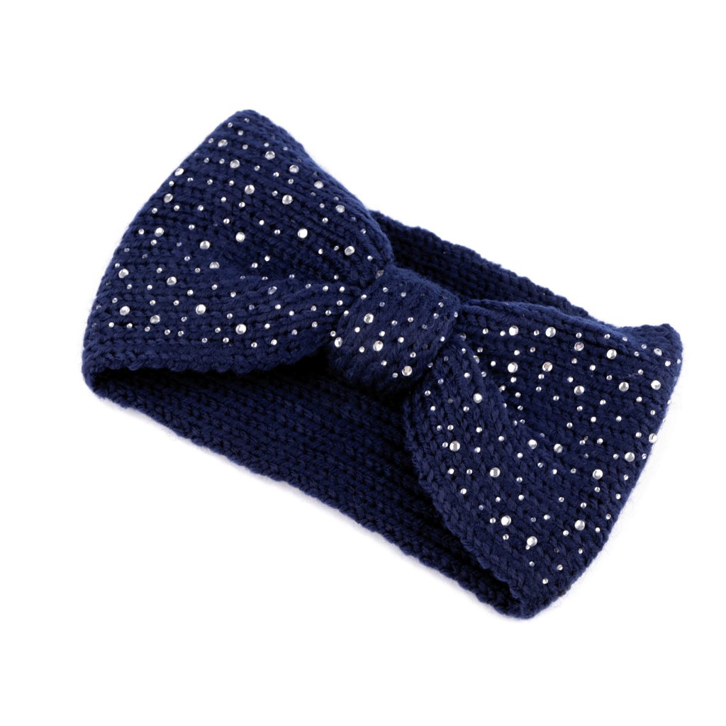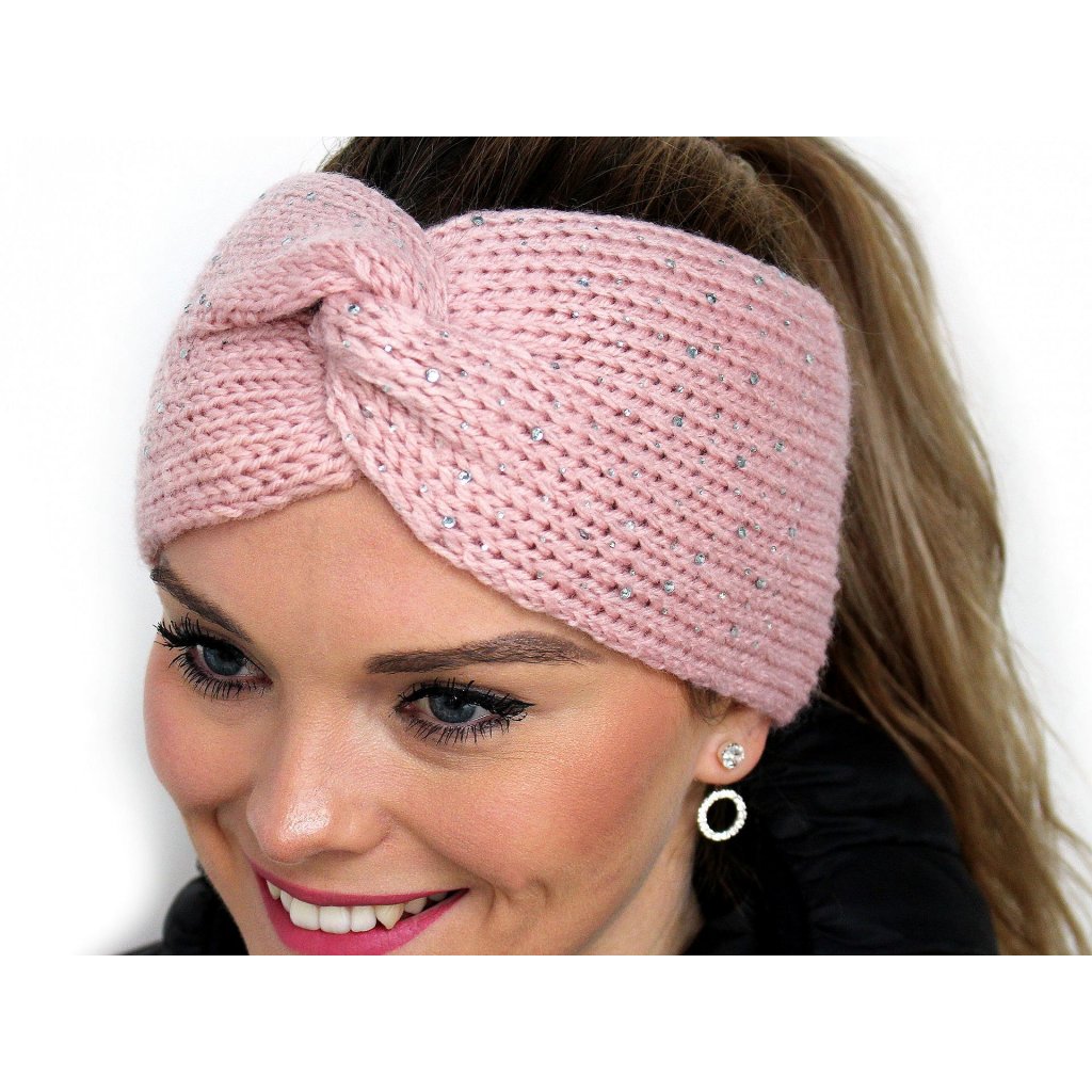 Stylová pletená čelenka je na čele křížená nebo má tvar mašle. V přední části je ozdobená malými broušenými kamínky. Je dostatečně velká a teplá, aby příjemně zahřála.