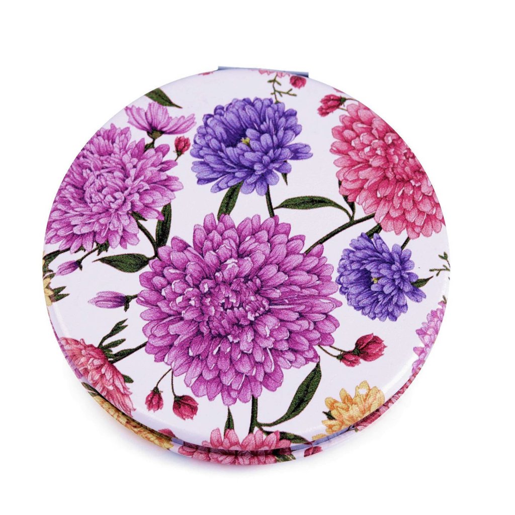 Zpracování? Krásná eko kůže s něžným květinovým dekorem 🌸 – potisk je krásně vyvedený na obou stranách. Uvnitř najdeš dvě zrcátka, jedno klasické a druhé zvětšovací pro precizní úpravy.